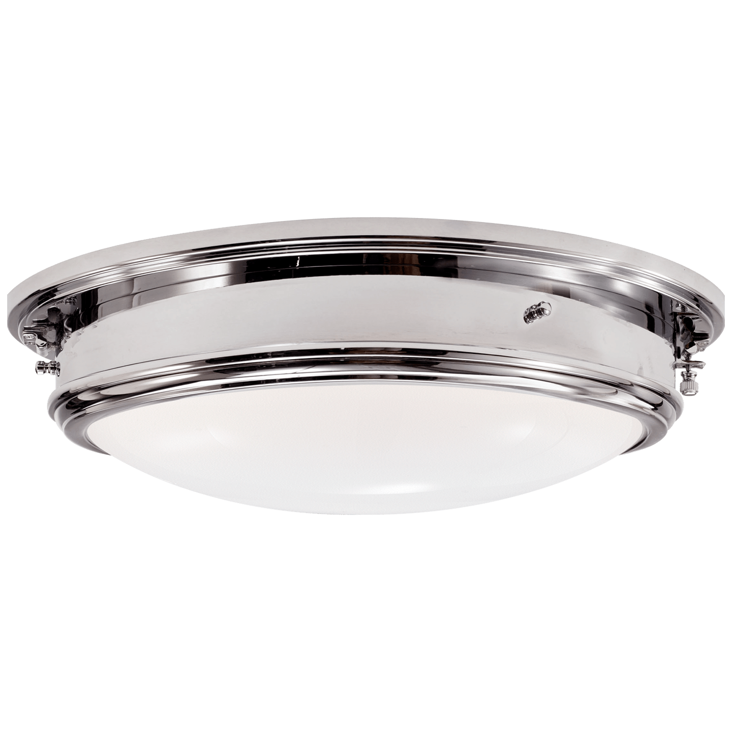 La Marine Porthole di Ralph Lauren presenta un design nautico vintage con fascino art deco. La cornice circolare in metallo è disponibile in finitura ottone naturale o nichel lucidato e contiene un paralume in vetro bianco. L'illuminazione calda valorizzerà bagni, corridoi e ingressi a coppie o in multipli.