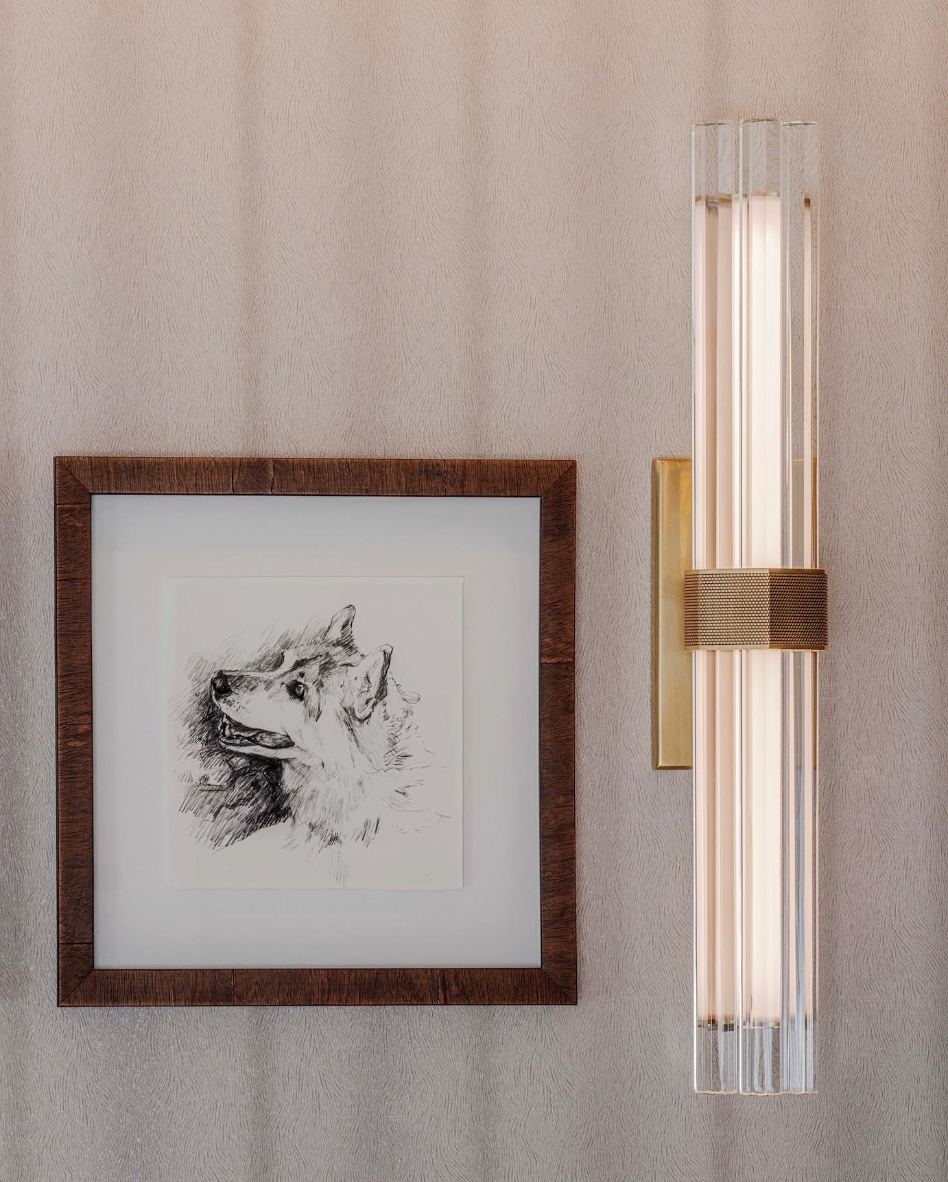 The Fascio 24” Sconce by Lauren Rottet is inspired by a bundle of reeds bathed in natural light, reimagined with laboratory glass rods crafted with modern precision. This piece adds unique elegance to contemporary interiors. With a width of 10.8cm, height of 61cm, and weight of 4.5 kg, it is available in Bronze, Hand-Rubbed Antique Brass, and Polished Nickel finishes.