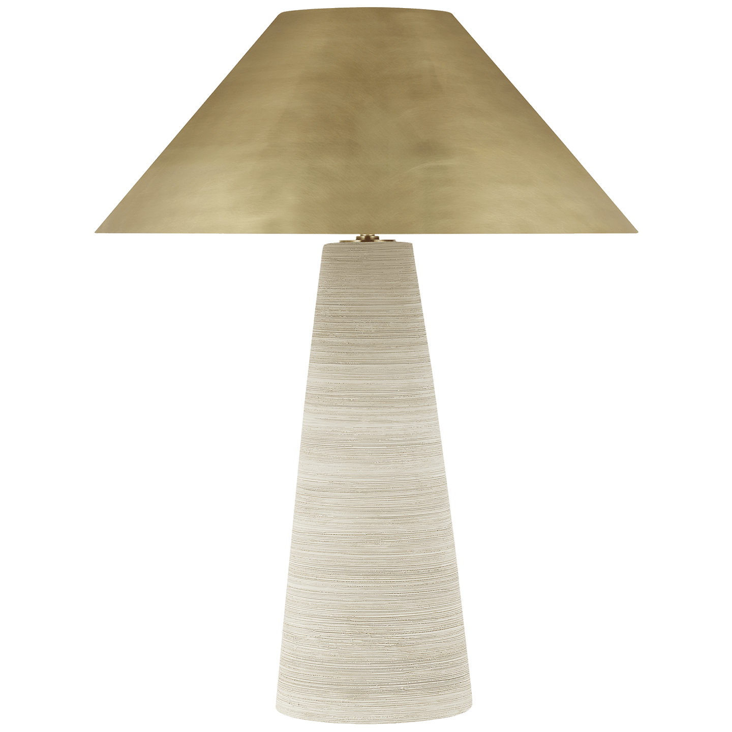The Karam Large Table Lamp by Sean Lavin introduces a compelling sense of texture and contrast to any setting. Its design is a study in complementary opposites: a foundation of hand-combed, artisanal ceramic provides a distinctive tactile feel, beautifully juxtaposed with a smooth, sleek brass shade. This layering of materials conveys sophisticated elegance while casting a light with a uniquely natural and inviting feel.